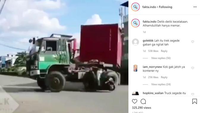 Detik-Detik Pengendara Motor Hantam Truk Kontainer, Untung Selamat - Liputan6.com