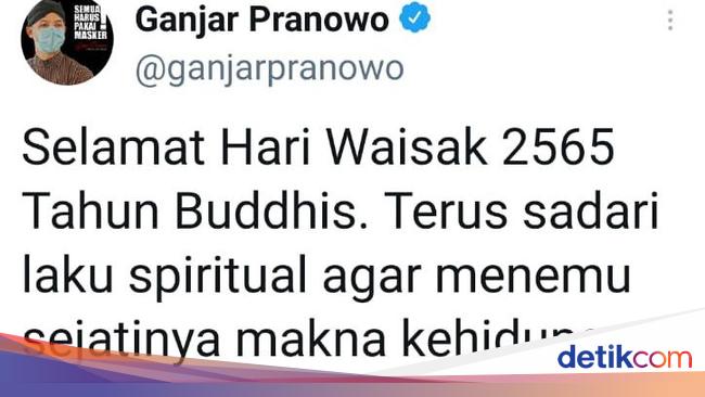 Sampaikan Selamat Waisak, Ganjar Ungkap Korelasi Jabatan dan Kebahagiaan - detikNews