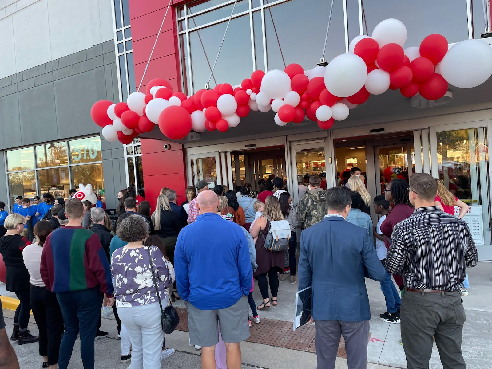 Earlier tonight, an impressive crowd gathered in front of the brand new, red-and-white balloon-adorned Target while the Nicolet High School band jammed and the Milwaukee Milkmen's Bo Vine Mascot and Target's Bullseye The Dog Mascot grooved out. It was a joyous occasion for many.