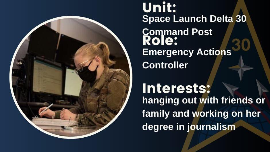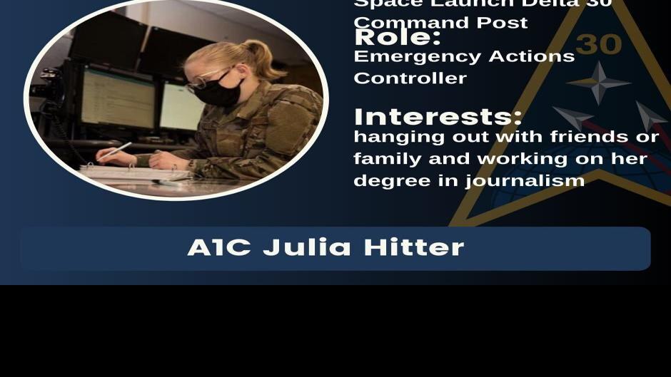 A1C Julia Hitter currently works as an emergency actions controller Space Launch Delta 30.