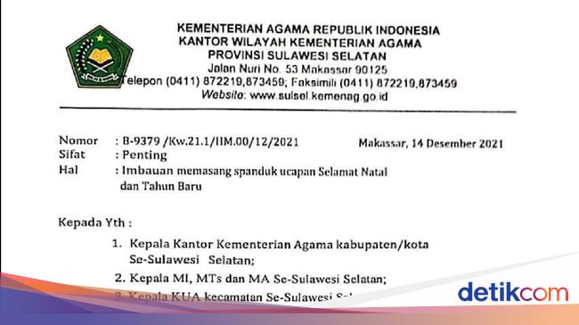 Kemenag Sulsel Imbau Seluruh Kantor Pasang Sepanduk Selamat Natal-Tahun Baru - detikNews