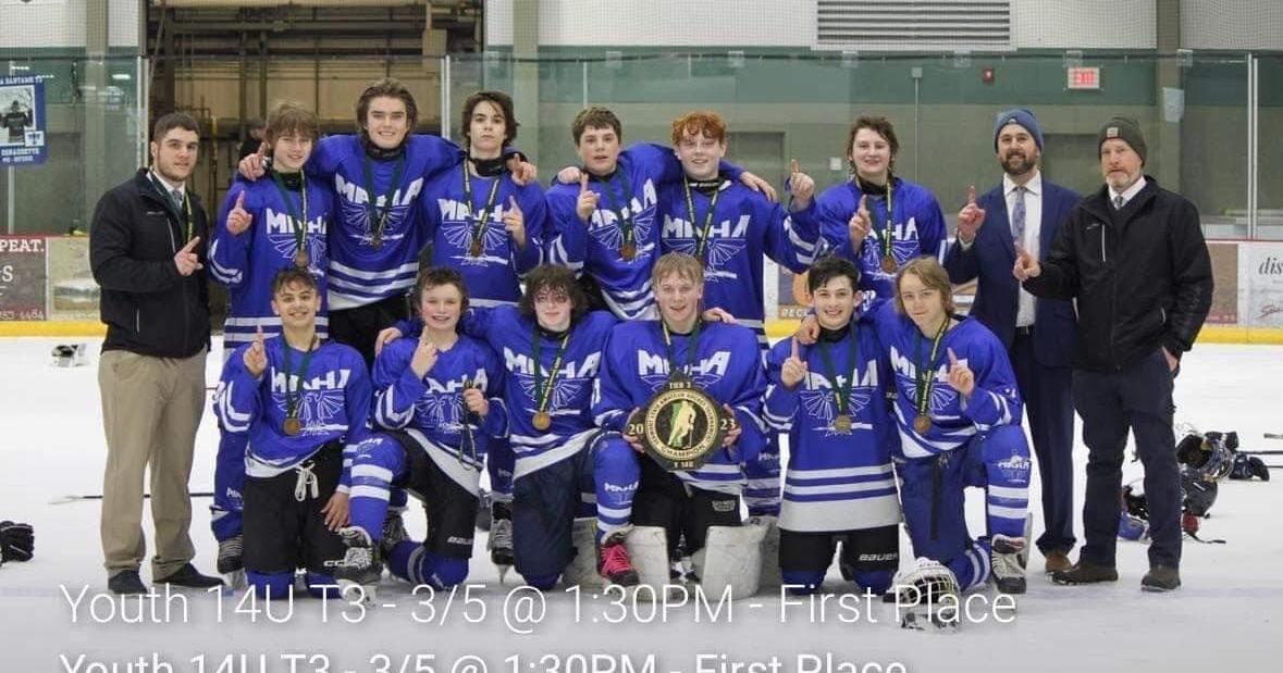 Congratulations to the MAHA youth 14UT3 team on winning the Vermont State Championship at Stowe on Sunday over St. Albans Skating Association 5-3. They're heading to Regionals in Exeter, NH, March 17-19.